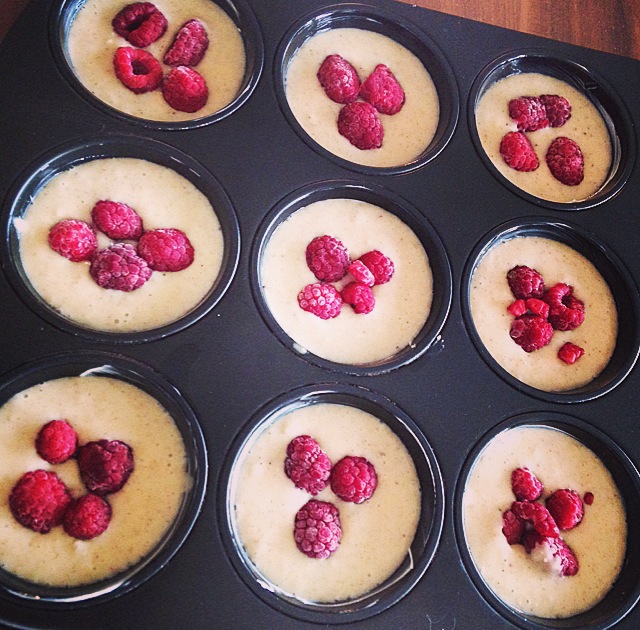 Liebt ihr Himbeeren auch so sehr wie ich? Da ich zu meinem Geburtstag kommenden Samstag mal etwas anderes als meine Schoko-Bananen-Muffins auftischen möchte wurde es heute an der Zeit diese Muffins zuerst mal – ganz uneigennützig – zu testen 😉 Und ja sie haben des Test bestanden – ich hab bereits zweimal getestet und die Muffins sind noch nicht mal eine Stunde alt 😀