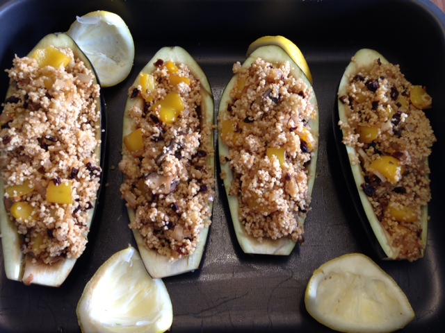 Heute haben wir mal wieder etwas neues ausprobiert – und zwar gefüllte Auberginen mit Couscous. Gekocht hat mein lieber P und ich habe die Ehre das tolle Rezept mit euch zu teilen 🙂 Es erinnert mich ein wenig an Sommer weil es so herrlich leicht schmeckt.