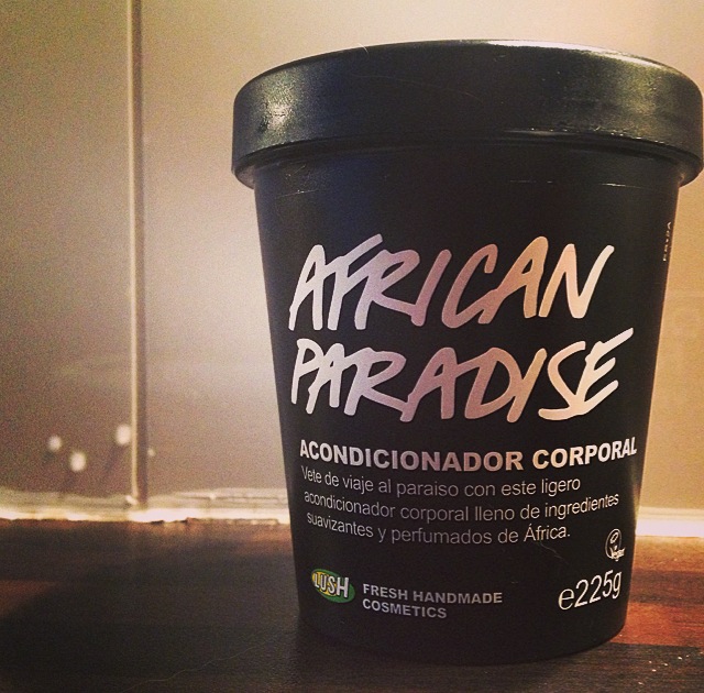 Heute möchte ich euch gerne über ein weiteres Lush-Produkt aus meiner bereits recht grossen Lush-Sammlung vorstellen. Und zwar habe ich diesen tollen Body Conditioner namens „African Paradies“ in Palma gekauft. Bis jetzt war ich leider erst urlaubsbedingt in 3 Stores (Berlin, Amsterdam und Palma) da es in meine Nähe keinen gibt. Auf alle Fälle habe ich überall tolle Erfahrungen gemacht in Bezug auf Freundlichkeit und Beratung. Vor allem wenn die Produktbeschreibung – wie jetzt in Palma – in Spanisch ist ist man sehr stark auf das Personal angewiesen – und siehe da ich wurde absolut nicht enttäuscht.