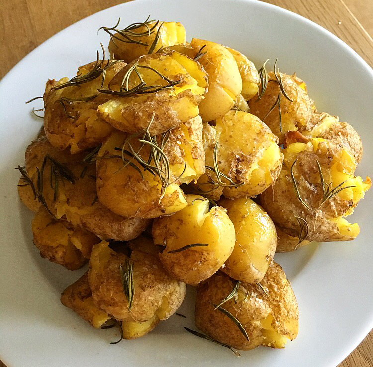 1. Lecker! So ein einfaches und köstliches Essen. Ofenkartoffeln gehen immer. Flachgedrückt gefallen sie mir richtig gut, so habe ich sie selbst noch nie gemacht. Danke für das Rezept!